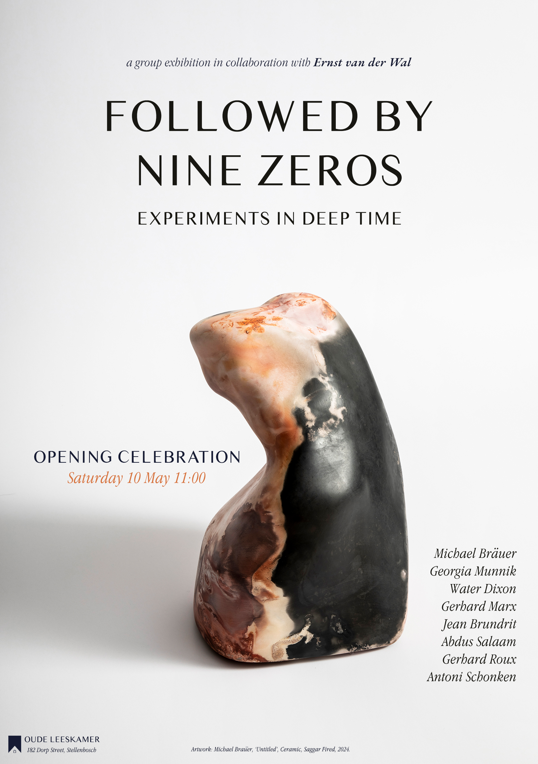 Co-curated with Clara Babette, this exhibition invited artists to create works centered on the theme of deep time. It showcased a diverse array of media and processes, including visual art, sculpture, and olfactory and sonic installations. Featured artists included Water Dixon, Michael Bräuer, Jean Brundrit, Abdus Salaam, Gerhard Marx, Georgia Munnik, Gerhard Roux, and Antoni Schonken.